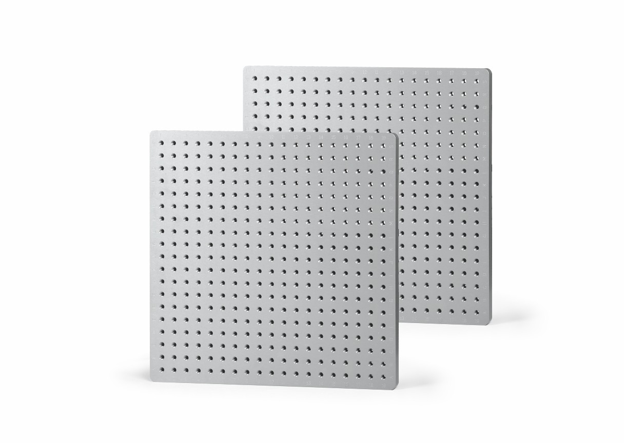 Le piastre standard presentano schemi a griglia alfanumerici con numeri di parte dei componenti visibili, consentendo la documentazione completa delle configurazioni di fissaggio. Ciò consente la riproduzione rapida e accurata di configurazioni identiche per ispezioni successive.